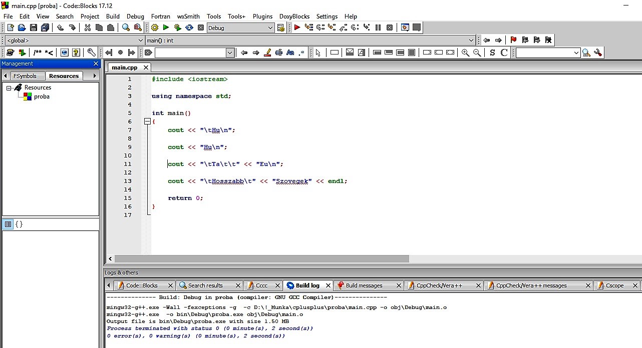 (a cout egy alap kimenet kezelő utasítás, ezzel megadtuk, hogy a kimeneti adatfolyamot használjuk)